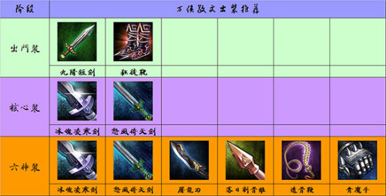万俟敬文出装推荐 万俟敬文属于远程外功输出武者,初期出门装为九阳短剑、狂徒靴;中期核心装为冰魄寒光剑(凌寒)、倚天剑(怒风);后期六神装为冰魄寒光剑(凌寒)、倚天剑(怒风)、落日锥(刺骨)、青魔手、透骨鞭、屠龙刀。