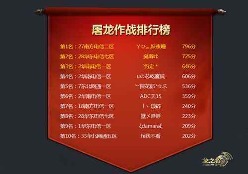 寻找老战友老战友活动圆满结束 屠龙榜TOP10正式诞生