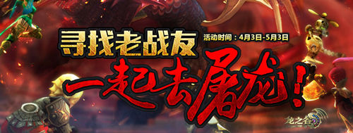 从4月3日开始,《龙之谷》开启了为期一个月的寻找老战友活动。无数谷迷玩家加入到寻找行列中,不停呼唤自己的曾经战友。随着时间的推进,一个个曾经灰去的名字重新亮起绿色,红龙巢穴中又出现了熟悉的战友身影,一个个屠龙小分队重新聚集,那些被遗忘的屠龙口号重新回荡在战火纷飞的巢穴中,曾经遗失的激情再次回归。并肩屠龙,不忘初心,让我们一起战斗下去吧!