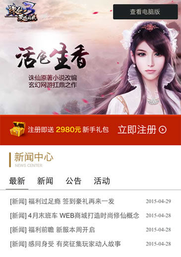 在移动终端呈猛烈发展的大背景下,小巧的手机已经在逐步实现台式电脑的功能,并在“便携”的绝对优势下越来越受到玩家的青睐。《诛仙3》手机官方网站已经在全新大版本之前抢先上线,并将大展身手!进入游戏手机官网,新版本的预热信息一手掌握,部分新版内容还将在手机官网中抢先爆料。使用手机搜索关键字“诛仙3”或专属扫描二维码均能在第一时间登陆官网。