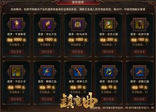 单服装备悬赏总量高达7500件接下来黑市活动将开始进入高潮,相信玩家刷本打装备的热情将进一步提升。加入《镇魔曲》,共享百万全民福利。