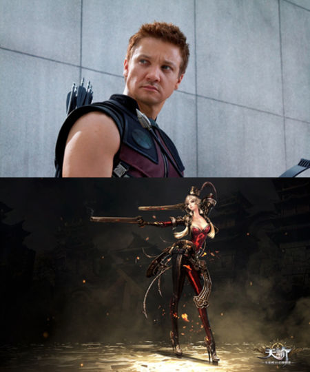和其他舞刀弄枪的职业不同,“炎天”是《天谕》中唯一使用枪械这等热武器的角色。同样他的定位也非常清晰,在整个团队中提供必不可少的远程物理输出,超远距离点杀被自己盯上的猎物。那么说到这一点,“复联”里相似的人物自然是远程杀敌的鹰眼了,当他张弓搭箭的那一刻,必将于千里之外夺上将首级。那种狙击手的冷酷风采,和炎天如出一撤。