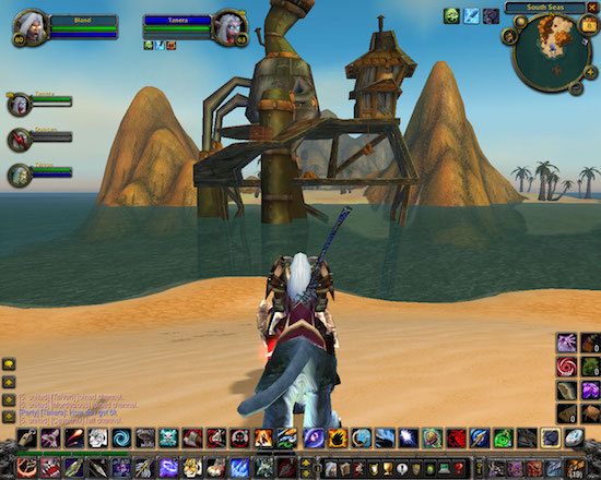 地精双子岛位于塔纳利斯东南方向的海中,这里有细腻的沙滩,清澈的海水以及高大繁盛的棕榈树,仿佛是艾泽拉斯版的马尔代夫或夏威夷。若不是高大丑陋的地精钻井平台等巨型工程设备戳在那里大煞风景,还真的是一处难得的情侣约会之地。可惜地精双子岛在《大地的裂变》之后就已经无法进入,这里原本被玩家们猜测可能是暴雪早早设计好并隐藏的失落群岛,但随着真正的失落群岛横空出世,这两座岛到底是什么来头便越发令人好奇。