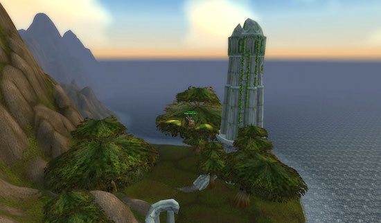 这恐怕是所有禁区中最不为大多数玩家所知的一处。这座高塔位于奎尔萨拉斯西北部,被高大的山脉与银月城所在的奎尔萨拉斯主体隔绝。早期玩家可以通过技巧爬上山峰,再飞身跳入,然而暴雪在《大地的裂变》后在空中增加了一面空气墙,因此现在唯一的进入办法是利用DK或萨满的水上行走效果从提瑞斯法林地东北部向东跨海前进,约3-5分钟后,便可远远的看到那座暗夜精灵特征明显的高塔。