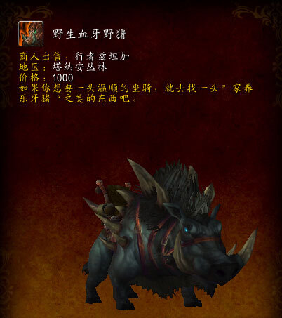 上周2008补丁中披露的新坐骑野生血牙野猪已正式加入