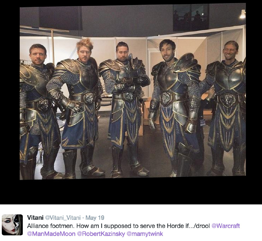 感觉魔兽世界电影的消息越来越多了,这也说明魔世界电影里我们越来越近了,最近魔兽世界电影化妆师Vitani在twitter发布两条消息,照片中是暴风城的卫兵小鲜肉们,简直太帅了~(我说的是装备~)