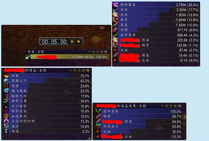 由于在PTR有大概200-300的延迟,所以有些情况下诡诈和影舞最后一秒的伏击并不能打出来,而且T18敏锐我在测试的时候将两个消失都用在了起手的爆发阶段,所以洞悉覆盖率可能没有那么高,敏锐4件套被改了很多次,我记得减少秒数应该是565421这样改变的,而两件套效果的伤害加成也变成了百分之十,之前减CD还是5秒6秒的时候PTR貌似还没有T18,而减少时间是四秒的时候,由于当时在PTR没有消失雕纹,就没有好好测试,之后弄到了消失雕纹以及动脉出血雕纹的时候,套装效果已经被改为两秒了,我在61那天打了挺久的敏锐木桩,在确定了输出手法后,木桩数据在饰品触发正常的情况下,大概能打到4W8左右(找到了图我会补上),而这次被砍成了一秒,别的不说,光敏锐大师和两件套效果的伤害加成,就减少了大概百分之8的覆盖率。