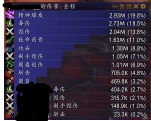 总结:如果没有其他改动,刺杀和敏锐的毕业饰品就是阿克蒙德职业饰品+灵魂之匣,而6.2在装备基本齐全的情况下,输出的核心就是灵魂之匣,在灵魂之匣触发的十秒内打更多的技能,打更多的技能,打更多的技能(很重要,所以说三遍),单人木桩的时候,敏锐的灵魂之匣利用率明显不如刺杀,刺杀哪怕低位能量,没预感,星不多的情况下,都能轻松的打出2-3个毒伤,而敏锐在没有消失或影舞的情况下,想打出两个TG都是非常困难的,或许在团本中,尊严能稳定的提供2秒一星的情况下,敏锐的情况能有所好转。
