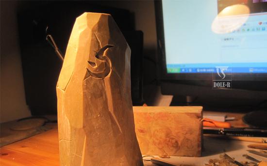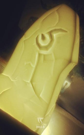 最开始是贸然做的,这么大块油泥里面是加骨架了的,其实也就是瓦楞纸卷起来冒充骨架用。凹凸符文的位置先留的一个槽。