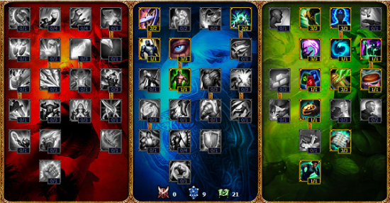 剑圣采用的是21-9-0的攻击天赋。剑圣还是以输出为主,因此点出足够的攻击点。天赋中的攻速需要点满,因为剑圣能从攻速中获取不少收益,而符文里通常不带攻速。