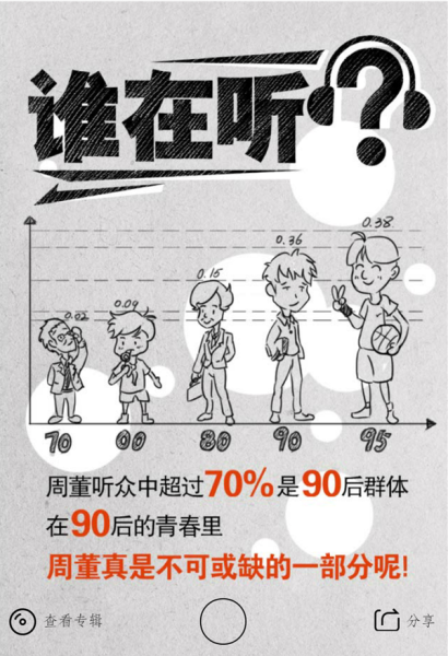 理由六:受众群体吻合截止2014年,注册玩家破亿,最高同时在线人数750万,日活跃玩家2700万,相当于巅峰时期魔兽世界(2010年)的2.35倍,月活跃玩家人数超过6700万。周杰伦,截止2014年,自2000年在最大搜索引擎baidu的搜索量平均保持十亿人次,在占市场份额仅百分之二十的QQ音乐2014年年度统计播放量43亿人次。英雄联盟玩家以10-25岁(1990-2005年出生的)的男性玩家为主,周杰伦听众覆盖10-30(1985-2005),男性听众比例业内偏高。