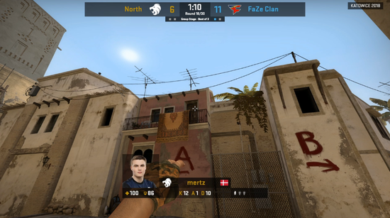 在昨天North对阵FaZe的比赛中。在地图mirage上,North队员在T家出生点丢出一颗烟雾之后,却突然自杀。