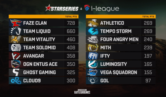 3月1日,SLi绝地求生全球群星联赛S1首日战罢。Liquid后发制人,展现了恐怖的实力每场击杀都名列前茅,天时地利人和第三至第五局连续吃鸡坐稳榜首。中国战队同样在比赛后期越战越勇,GOL小绝的亮眼个人表演以及最后一局GOL跟4AM打到第二、第三让观众们看到了希望。凭借着最后一局不错的发挥,4AM排名第七,GOL跃居第十,IFTY仍需努力排名第十四。