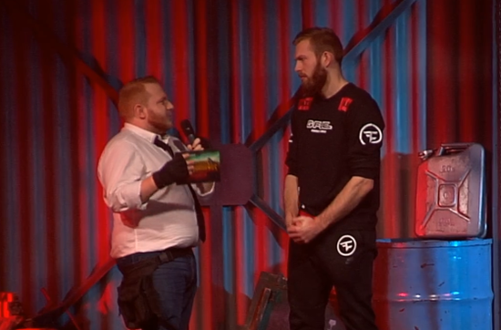 首局表演赛采用TPP第三人称模式,GOL开局表现抢眼淘汰VAGA拿到“一血”,无奈第四个毒圈太远被FaZe卡死提前出局。同样的4AM也是由于毒圈太远被迫跑毒在第五个毒圈被淘汰出局。IFTY则是一路稳扎稳打杀入决赛圈形成三足鼎立,干掉AVANGAR后与Tempo Storm隔墙对峙,无奈光柱圈刷在房区,Tempo Storm表演赛吃鸡。