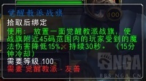 觉醒教派战旗:放置一面觉醒教派战旗,使战旗附近45码内的玩家收到的魔法伤害降低15%,持续30秒。