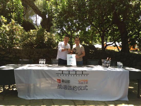 以生产葡萄酒而闻名的美国纳帕谷,此时,正在见证世界顶级游戏盛会上手游大咖们的摩天盛举,中国手游CEO肖健与金山云COO兼游戏云事业部总经理刘志刚,在NAPA酒庄达成战略合作,两位游戏界传奇人物,今后将书写怎样的辉煌令人期待。