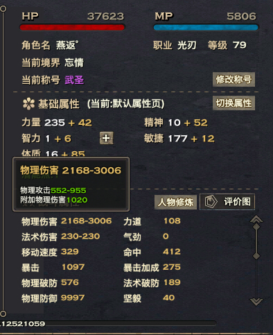 物理攻击:面板物理攻击是装备物理攻击*1.06得到。(我也不知道为什么会提升6%)