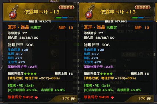 ·物理攻击 破伤1层(光刃技能效果),因为在叠1层破伤之后物理攻击从552-955 变成 580-1003提升了28点小攻和48点大攻,大小攻在伤害方面的收益几乎相同,所以我们看作提升76点大攻。