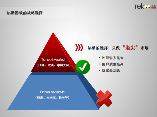 “要做就做数一数二的‘塔尖’市场,高端市场溢价是普通市场的5-10倍,中国手游厂商只有占据‘塔尖’市场,才会真正受到国际游戏市场的认可。”对于海外市场的优势,刘勇早已思考透彻。他表示,热酷游戏把日本和美国两大市场划分为塔尖市场,两个市场的机制相对成熟、单品ARPU高、玩家活跃度和忠诚度高,用户粘性大,与其在一般市场贴身肉搏,不如全力抢占塔尖市场,其收益的可持续性和用户的稳定性也会得到更大程度的保障,这也是热酷游戏今年加速推进全球化战略的初衷。