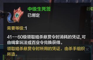虽然说悬赏令领取时候没有低中高级之分,但是41级之前使用初级生死签,41到60级使用中级生死签,61级以后使用高级生死签。