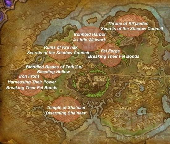 另一个为随机日常,完成后奖励500埃匹希斯水晶和250声望。共有6个随机任务,下面这个地图为每个任务的任务地点: