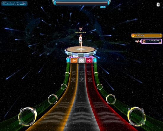 除了传统模式和近几年新出的太鼓模式以外,游戏中加入了星星模式、星际模式以及斗舞模式。星星模式类似于同类手游中的玩法,不过它是一个以“节奏”为主的玩法,当星星移动到对应的方向键上,只要外面的时机提示绕满后按下方向键就可以,玩法上虽不难,但是要想掌握好时机确实不太容易,尤其是前期很容易被后面的场景所影响不能很好的看清方向键。星际模式的玩法是当年的劲乐团按照音符落下按键一样,不过这游戏中则是从下至上移动,而在此模式中玩家可以使用道具干扰对方,以此让自己赢得最后的胜利,此时不光是看自己的操作能力了。斗舞模式是以团队合作为主,五名玩家挑战其中的NPC,当对战过程中能量条满以后则可以对NPC进行攻击,最终要NPC恶毒者扑街获得胜利。虽然游戏开放了新的模式玩法,但是与同类舞蹈游戏一样,其实大部分老玩家仍然停留在经典模式之中,或许传统玩法更能勾起玩家当年的回忆,而新模式的加入可以看作是一款调味品。