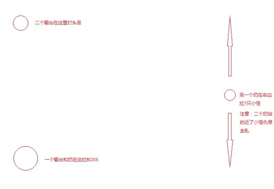 第一波,头目>小怪;天香1右边拉4只小怪,二个输出打头目,天香2跟另一个输出拉好BOSS。