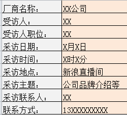 厂商名称、受访人、职位、预约日期、预约时间、采访主题、专访联系人以及联系方式。