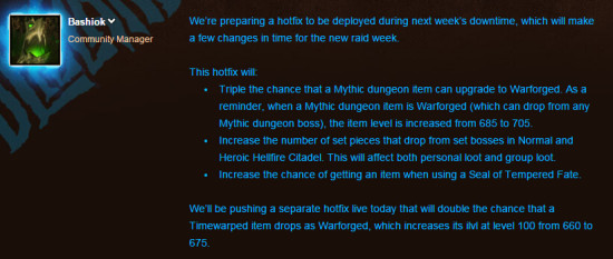 增加普通/英雄地狱火堡垒boss掉落的T18套装数量。该改动在个人拾取和团队拾取方式下都有效。
