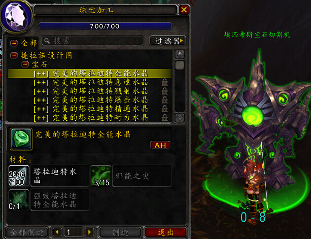 珠宝专业会接到一个引导任务,引导到“阿卡塔的哨岗”,坐标25 39。然后做一个任务后会激活NPC旁边的埃匹希斯宝石切割机,解锁75全能宝石的制作(非珠宝专业好像接不到任务,也解锁不了这个机器人)。