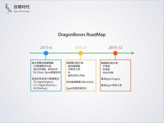 现在交由白鹭时代进行维护、运营和更新迭代。DragonBones正式成为白鹭Egret大家庭的一员。为了弥补目前整个HTML5游戏开发中还没有出现较为出色的骨骼动画解决方案这一缺陷,帮助HTML5游戏开发者更好的提高制作效率。白鹭时代特意推出脱离Flash运行环境,兼容几乎所有骨骼开发的独立动画工具DragonBones Pro。