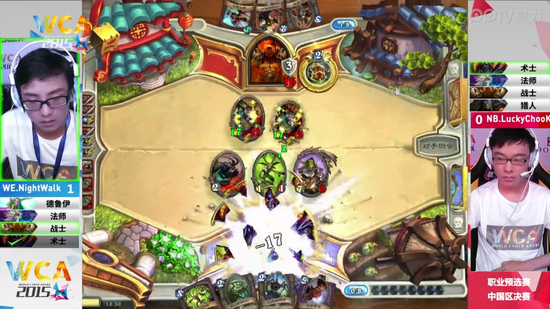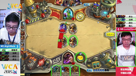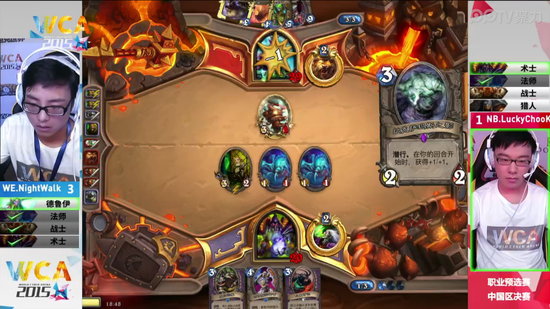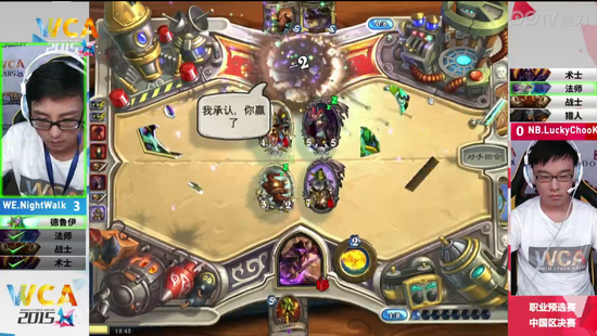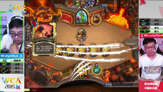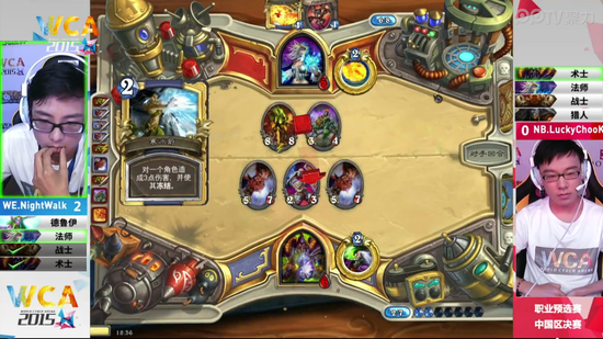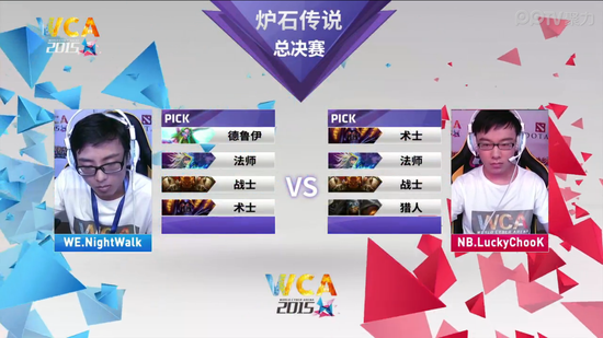 WCA2015中国区资格赛职业组7月4日迎来了《炉石传说》的决赛,对阵的双方是被称为炉石颜值最高的二位——NB的弱鸡和WE的衣锦夜行。衣锦夜行作为一个年轻的小将需要一个冠军来证明自己,而弱鸡的实力广大炉石粉丝也是有目共睹的,他们的决赛一触即发,究竟会摩擦出什么样的火花呢?