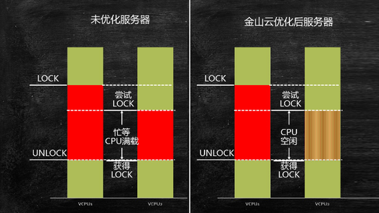 *满载指大部分案例,如果业务自旋锁很少则会高于本例通过以上五点对资源使用、硬件性能提升共同的优化、协助下,金山云技术团队实现了将云主机与高配物理服务器的性能无限接近。由于之前一台物理主机只开启一个游戏服务,而金山云云主机可以在一台物理机上开启多组服务器,更有效地利用物理机的资源,最终实现了单台云主机上支撑近6000人同时在线。