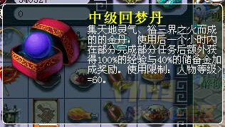 首先就是大多数人都知道的回梦丹,老玩家回流奖励中会得到这个东西,绑定者也会得到中级回梦丹的奖励。