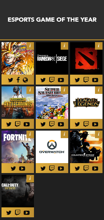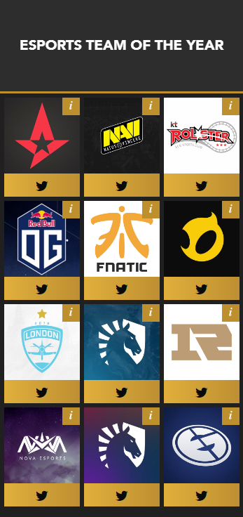 (其他战队例如Liquid、EG、Fantic等战队则是以其他电竞项目分部入围提名)