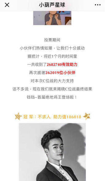 这个活动是以微信小程序的方式,每个助力的账号都是跟手机绑定的真实账号,所以活动本身还是比较真实、令人信服的。而且从公布的数据来看,有26万人参与了投票,也不算小打小闹的比赛了(甚至可以说是大赛了)。