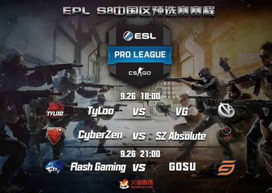 CS:GO EPL S8中国区封闭预选赛将于9月26日进行,包括TyLoo在内的多支中国CS:GO豪门战队以及韩国MVP PK、日本SZ Absolute共八支战队将争夺一张EPL S8亚洲区预选赛晋级门票。火猫直播将承办本次EPL S8中国区预选赛,并全程独家直播EPL S8所有阶段比赛,欢迎到时收看!