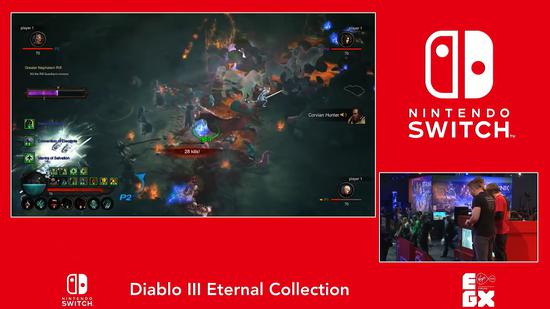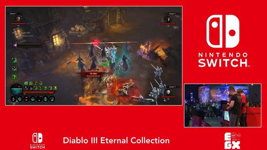 今天任天堂英国分公司发布了一段EGX期间Switch版《暗黑破坏神3:永恒收藏版》的试玩视频,这段视频由现场工作人员使用Switch在掌机模式下进行本地多人联机,一起来看看效果到底如何吧: