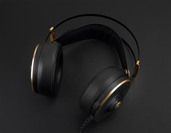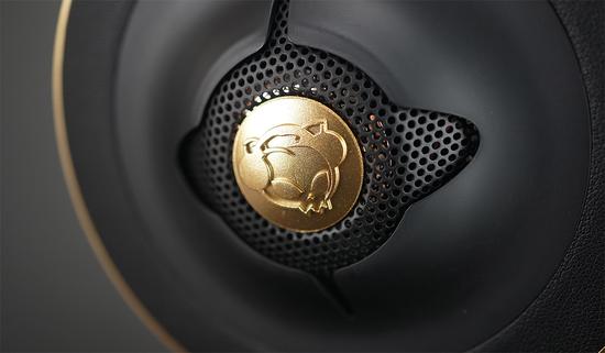 在设计方面,Akko采用了低调,更具质感的黑金配色,黑色铝合金金属头梁及高品质皮革表面,在连接处都用金色点缀,特色的Akko金色骷髅猫图案,彰显品牌的特别之处。耳罩使用了小羊皮材质,佩戴舒适性佳,即便长久佩戴也依然畅玩无忧。