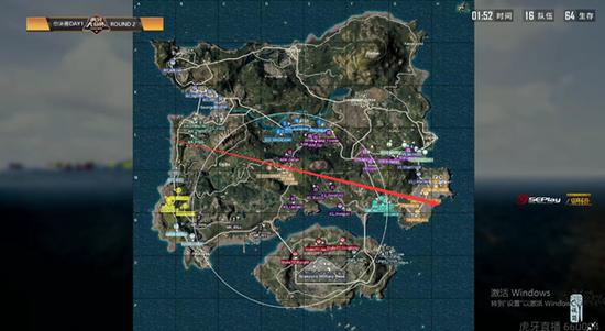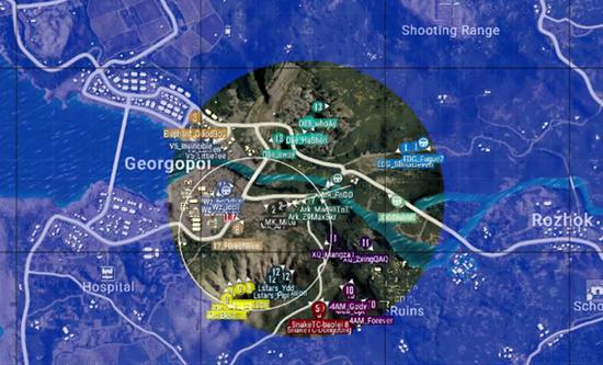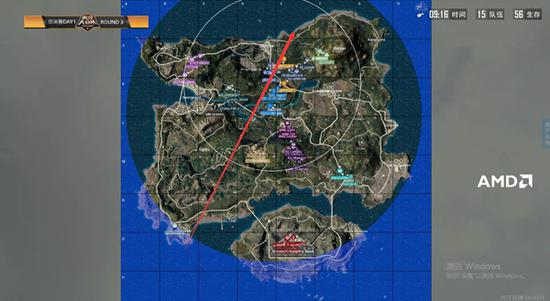 本局比赛航线从西往东,从医院下方飞往核电厂方向,与上局相比航线比较平均,大部分资源点都能到达。4AM选择了学校,17选择了P城,WZ选择了G港上城区与Z港,安全区刷在了以十二宫为中心的地图中下区域,是一个阴阳圈。