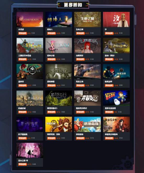 更有凭借精美细腻的视觉效果和感人的故事发展斩获好评无数的独立游戏《去月球》、两款解谜类游戏《影子里的我》、《蜡烛人》以及《纸境奇缘》、《程序员升职记》等,都在打折大军之中等你领走体验!