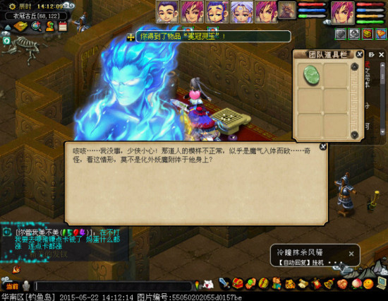 战斗结束出现“冕冠之灵”,点击获得任务道具,并且在左下角刷出“精美的发钗”任务道具(图片上被传音挡住的地方