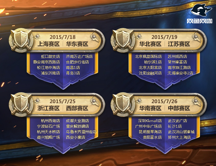 2015网鱼网咖《炉石传说》全国挑战赛暑期震撼开战,本次赛事旨在为炉石玩家提供良好的线下体验、休闲的竞技平台。此次挑战赛覆盖全国近30个城市32 家门店,共分8个大区,分别为上海、浙江、江苏、华南、华东、华北、西部、中部,其中城市预选赛及大区决赛均选择网鱼网咖在当地的旗舰门店进行,全国总决赛将在上海网易暴雪电竞馆展开。