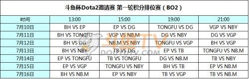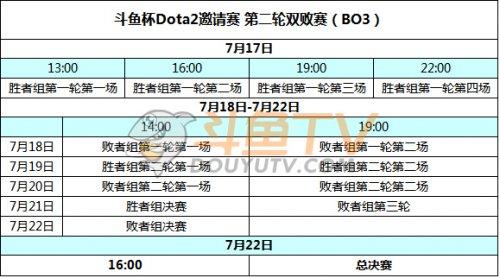 本次斗鱼杯Dota2邀请赛共吸引到八支国内一线战队参与,赛事分为积分排位赛以及双败赛两阶段进行,7月10日至16日进行首轮BO2积分排位赛,积分排位赛优胜队伍进入胜者组,落败队伍自动进入败者组;7月17日至22日进行BO3双败赛,整个赛事为期12天。