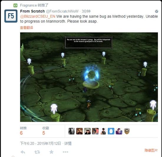 - 18点24分,正在努力成为世界第三击杀玛诺洛斯的欧服法语区公会From Scratch发推,表示他们遇到了和Method同样的问题。