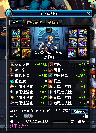 额忘记说了武器13的属强也就酱紫了 主要是防具左曹没红字 所以面板比较低换换卡恩能好看点。