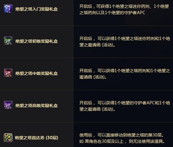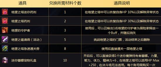 1. 本次活动道具中【希望之痕 】 、 【 绝望之塔直达券(50层)】为账号绑定,其他道具均无法交易;