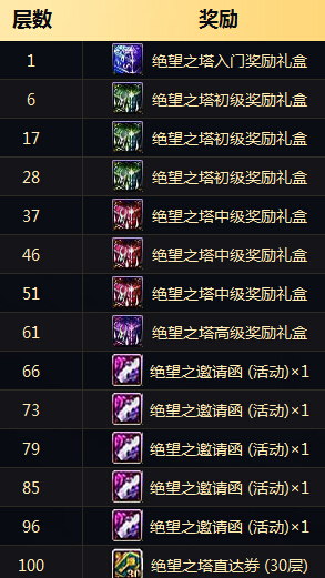 活动期间,勇士们通关绝望之塔到达特定层数可以获得奖励。