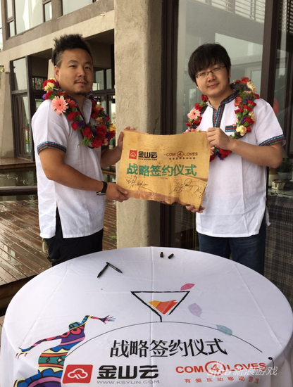 签约仪式在云南大理的海云栖举行,在颇具浪漫诗意的大理洱海边,双方公司在原生态树皮上,签下了面向未来的合作协议。有爱互动将依托金山云基础云服务、游戏云评测平台等多项服务,帮助游戏提高吸量和留存指标,以保证上渠道能有一个好的表现从而增加产品成功的机会。