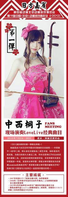 “LL二胡女帝”中西桐子,6岁开始学习二胡,曾到到北京中央音乐学院留学二胡一年,接受过多位二胡艺术大家指点。在国内动漫视频网站中,聚集了大量的人气,甜美可爱的外表,和精湛的乐器演奏技巧,让无数观众成为她的粉丝。本次中西桐子将于7月25日-26日两天参加IDO12展会,不光会登台现场表演,还将更有签售环节,为粉丝带来最精彩的内容。